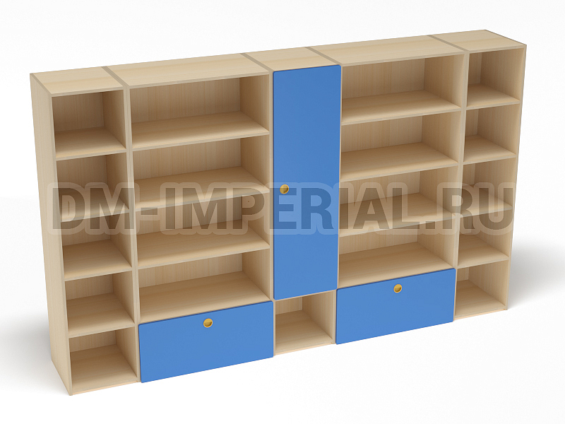 Шкаф изготавливается из ламинированных панелей толщиной 16 мм. Для придания гладкости и эстетичности на торцах используются кромки ПВХ. Шкаф выполнен устойчивым, крепежи металлические, нержавеющие, качественные. Фурнитура удобная и безопасная для ребенка. Такая мебель хорошо подходит для хранения игрушек, книжек, декора и прочих мелочей в ДОУ.