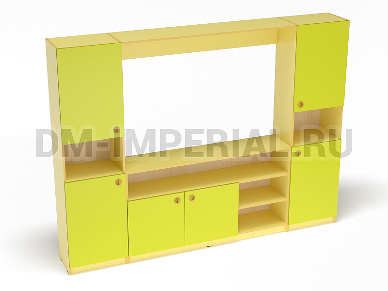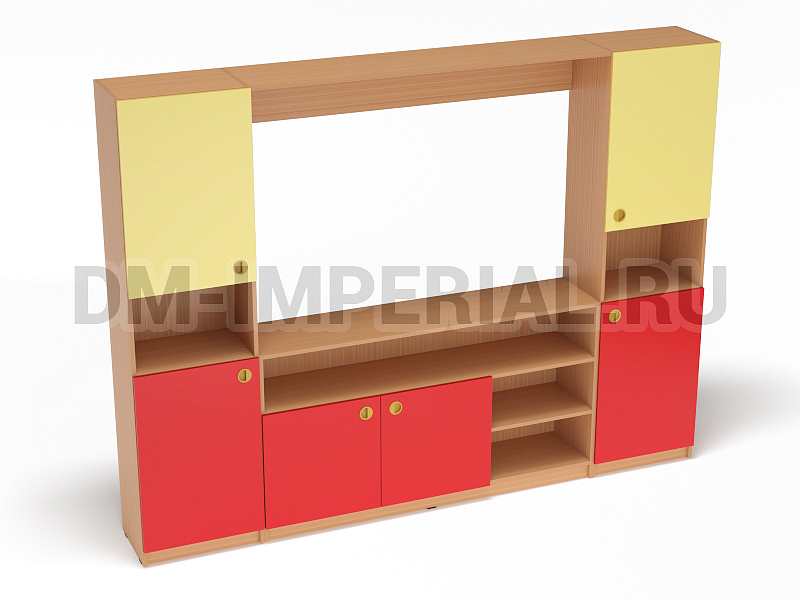 Детская стенка «Дошколенок» - отличный вариант мебели для оформления учебно-развлекательного пространства в ДОУ. Это универсальная, комбинированная система хранения, в которой предусмотрены не только закрытые шкафчики и полки, но также специальное демонстрационное пространство.
