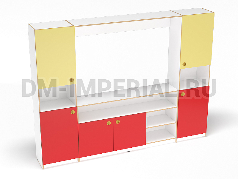 Последнюю секцию можно использовать, например, для навешивания учебной доски или небольшого телевизора. В зависимости от нужд детей и воспитателей такая стенка может стать частью образовательного процесса и развлечений. Наполнение шкафчиков удобно. Внутри можно хранить учебники и книжки, предметы для творчества и хобби. Открытые пространства подойдут для красивого декора.